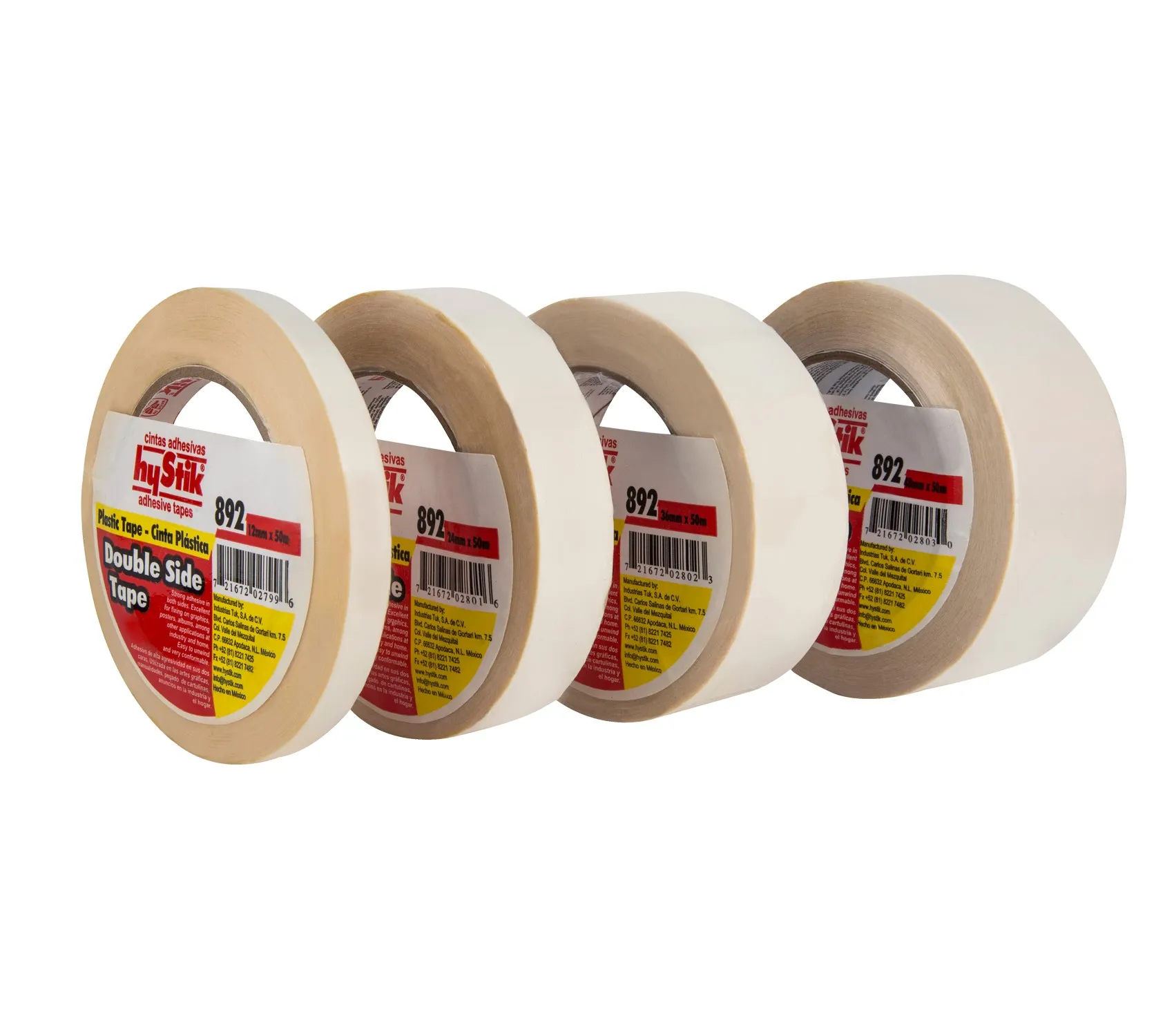- Cinta de alto desempeño de 0.07 mm de espesor. Utilizada en la industria para fijar placas de identificación en radios, televisores, estufas, refrigeradores, para fijación de aislantes térmicos y acústicos en la industria automotriz; y en general para unir dos materiales como: pieles, madera, plástico, metal y otros materiales.